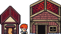 so ive redesigned the main character and added a few extra characters. I've also been working on another building, ill add them to the sprite sheet once i think they are done but i like how its turnin...
